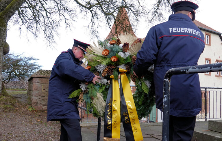 Die Freiwillige Feuerwehr Dilsberg legte den Kranz nieder. Abordnungen des Schützenvereins, des Turnerbunds und des Kyffhäuserbunds senkten ihre Fahnen. Ein Moment des Innehaltens für alle, die an diesem Mittag gekommen waren.