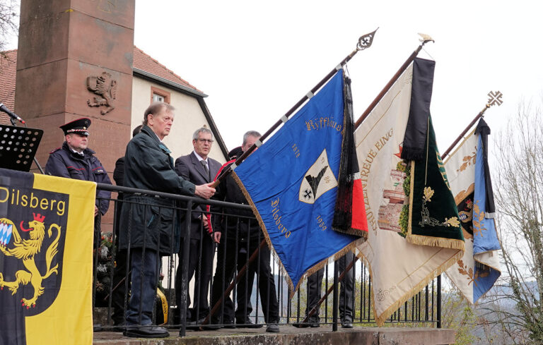 Ortsvorsteher Andreas Erles erinnerte in seiner Ansprache an die Geschichte Dilsbergs. Die Mauern der Burg hätten Schutz geboten, jedoch auch Zerstörung erlebt, sagte er. Hinter den vielen Namen auf den Tafeln des Ehrenmals stünden junge Männer aus dem Ort – Menschen mit Hoffnungen und Zukunftsplänen, deren Leben der Krieg ausgelöscht habe. Viele Familien hätten mehrere Angehörige verloren, andere seien heimgekehrt, aber für immer gezeichnet geblieben.