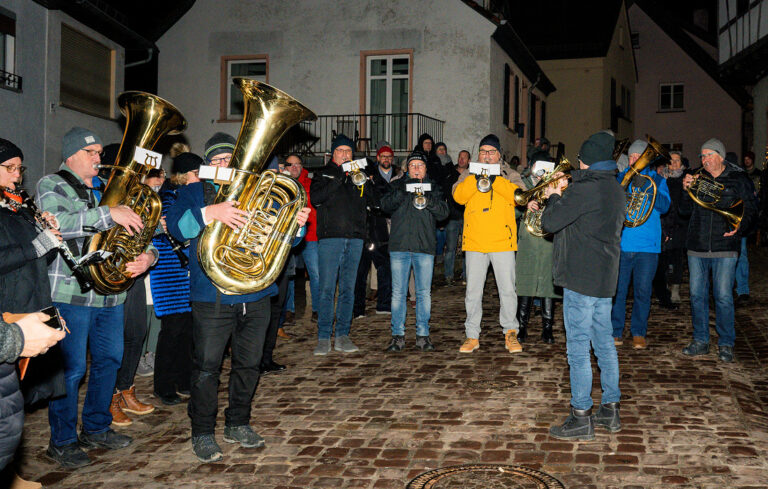 Der Musikverein Trachtenkapelle, unter der Leitung von Walter Nußko, steht wie jedes Jahr schon bereit, um die Nachtwächter auf ihrem Rundgang zu begleiten.