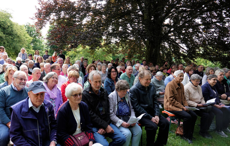 Im Fürbittgebet wurden die Predigtgedanken noch einmal aufgenommen. Das anschließende allseits beliebte irische Segenslied wurde sich als Wunsch zugesungen: „…und bis wir uns wiedersehen, halte Gott dich fest in seiner Hand.“